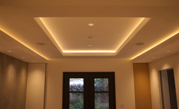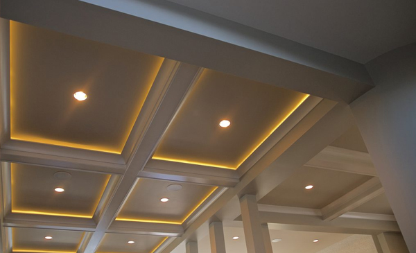 Cove lighting is ideal when you need to give a room just a warm glow. The light source is installed in a coffered light recess such that it is out of sight from all angles. The light is directed upwards and, when bounced off the ceiling, gives the room a soft warm glow.
