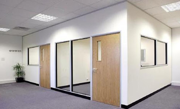Drywall Partitions are basically of two types; Gypsum wall partition which bifurcates an interior workspace such for the construction of rooms in an office space and Cement Board partition which are for construction of Wet area Drywalls. The installation is quick and sturdy consisting of GI steel frame which is encased in gypsum plasterboard, any wiring is accomodated within the framing unit itself. The Drywalls are attached on either side with self-drilling screws and the joints are taped and finished with suitable jointing compounds. Apart from their durability and cost effectiveness Dry wall partitions are quick to intall, they are light in weight and act as good sound insulators. Cement Drywalls are good in areas requiring resistance against heat and moisture.